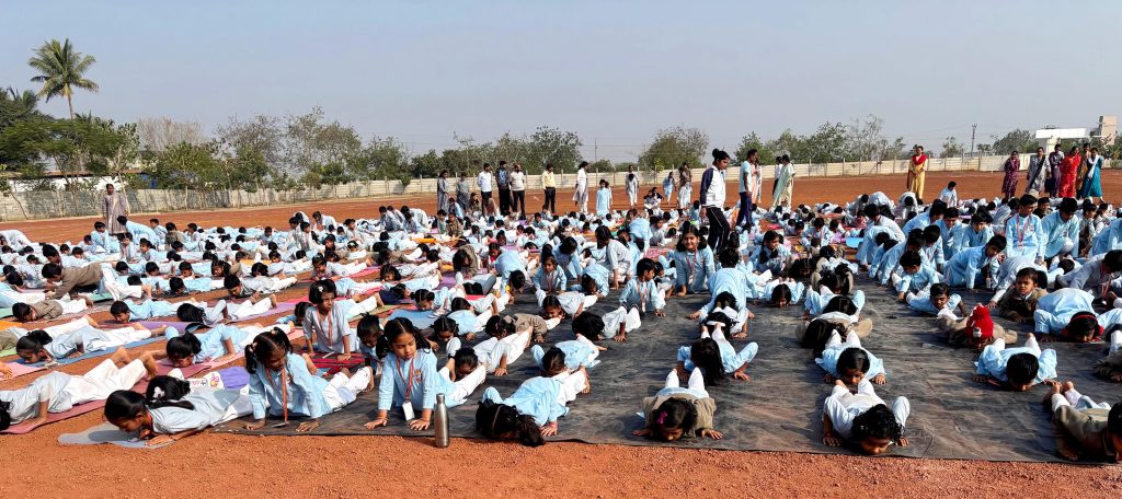 Kalaburagi, Jan. 24: Ratha Saptami was celebrated herein Rashtrotthana Vidya Kendra – Kalaburagi. Sri Nityananda Bandi, a renowned yoga therapist from Kalaburagi, attended the program and delivered an inspiring speech, emphasizing the importance of sun worship and adopting a healthy lifestyle. This was followed by a fascinating display of prayers and cultural performances by the students showcasing their artistic talents. Teachers and students performed a mass Surya Namaskar. Teachers and students of Government School, Sharan Sirsagi and Government School, Thanda attended the program and participated in the activities.